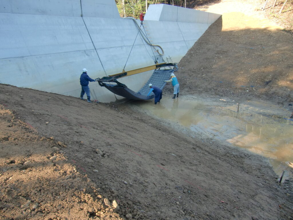 クレーンなどで敷設・固定する法面保護工法です。